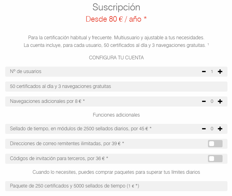 Las cuentas de suscripción están orientadas a usuarios que necesitan certificar de forma frecuente. Si sólo usas Safe Stamper de manera esporádica, la cuenta prepago se mantiene para ti.