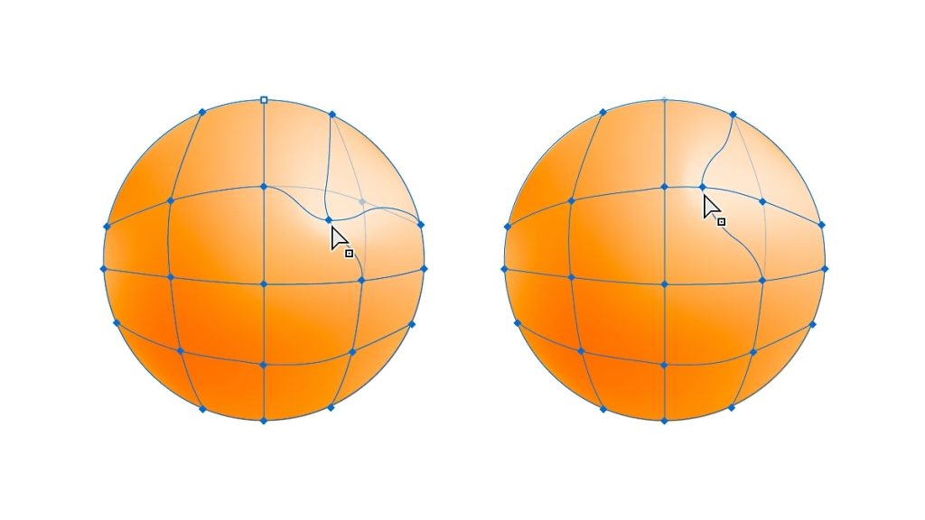 Muchas veces, las líneas que unen los distintos nodos de la red no son completamente rectas, algo que aporta aún más realismo al objeto que estamos diseñando, ya que las formas naturales suelen tener curvaturas. Estas curvas generadas permiten al usuario adaptar mucho mejor los degradados, sobre todo, si hablamos de objetos como una manzana, una botella o un rostro de una persona.