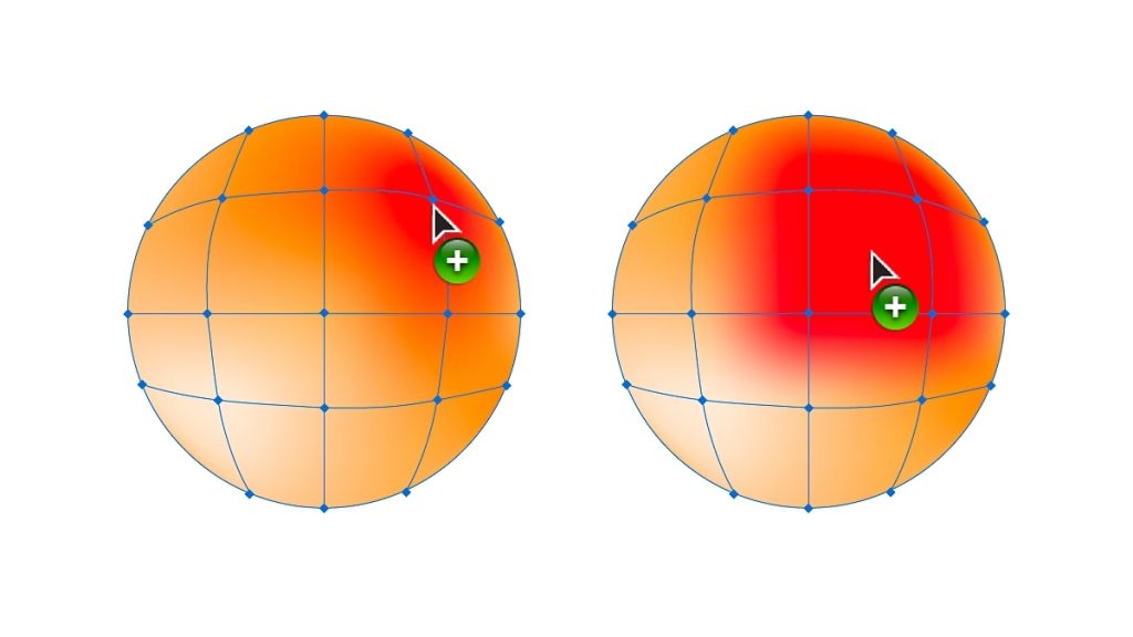 Para aquellos diseños en los que se quiera aportar más realismo, los usuarios pueden añadir nuevos puntos a la malla. Mediante la herramienta Malla, puedes clicar sobre cualquier línea existente dentro del objeto y, automáticamente, se creará un nuevo nodo en ese punto exacto. Puedes editar este nuevo nodo y otorgarle el color que desees. Cuando más nodos crees, más difícil será manejar el diseño.