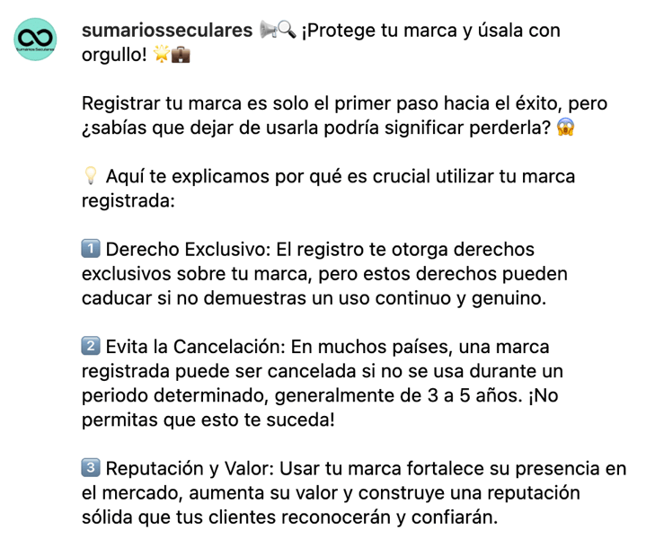 Cuando tengas una obra, es decir, algo que sea de tu creación, original y que se haya hecho con la finalidad de generar una obra (si tropezaste y cayó accidentalmente un bote de pintura sobre una tela, no es una obra). El listado de lo que puede ser una obra es enorme, pero me voy a concentrar en lo que podemos considerar como tal en Instagram®, para ello utilizaré como ejemplo la cuenta @sumariosseculares: