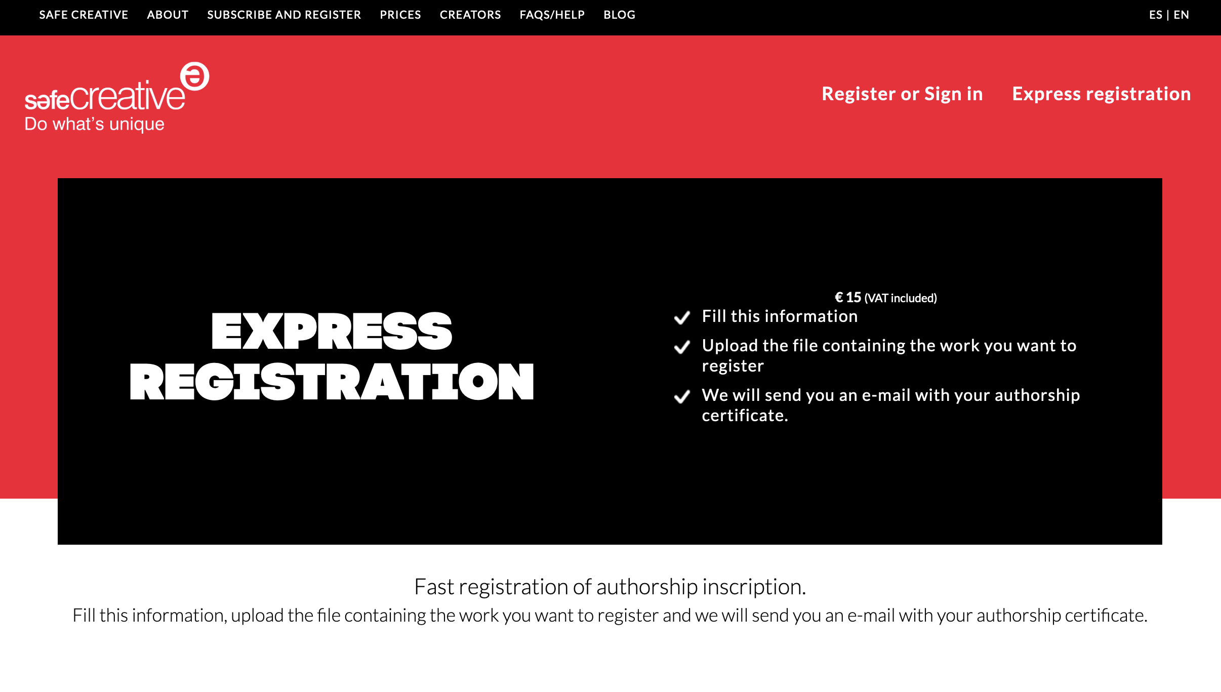 You can register your sales dossier in Safe Creative from 6,5€ per month.
