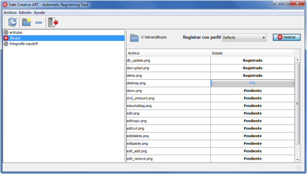 Así de simple. Basta con que pongas en la, o las carpetas que hayas configurado, los trabajos que quieras registrar y se irán registrando automáticamente. Ten en cuenta que es interesante tener distintas carpetas para distintos tipos de contenido, como fotografías, escritos, programas, canciones, etc.