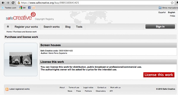 Puedes evitarte muchas de esas vicisitudes usando la nuevas plataforma de venta y licenciamiento de obras que Safe Creative ofrece a todos esos creadores y titulares de derechos de obras. Y sive para ebooks, fotografías, música, vídeos y cualquier otro trabajo que hayas registrado.