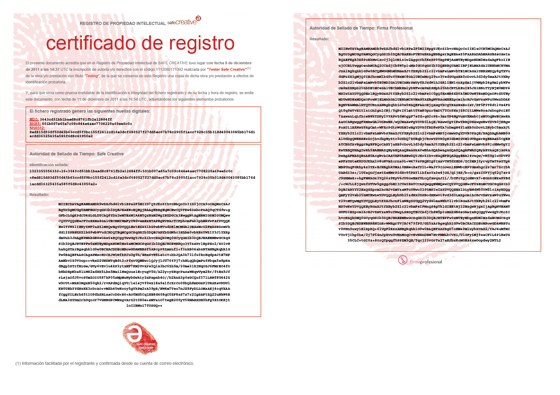 Safe Creative mejora el certificado de registro, convirtiéndolo en una auténtica prueba registral técnicamente irrefutable, cuya validez, basada en la tecnología utilizada, es independiente incluso del propio Safe Creative.