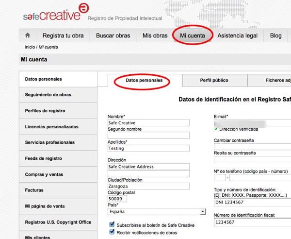 Así pues cuanta más información se complete en esos apartados, tanto mejor para poder sacar el máximo provecho a la evidencia que se genera en Safe Creative. Para eso recordad, completar los datos de la mejor y más rigurosa manera posible. A los que ya lo habéis hecho, verificad periodicamente que tanto el email, como el domicilio y cualquier otro dato está perfectamente actualizado y sin erratas.