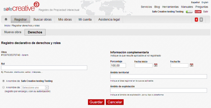 Ahora, además de la autoría, en el Registro de Propiedad Intelectual Safe Creative ya es posible registrar también cesiones concretas de derechos de una obra, indicando el tipo de derecho, el porcentaje, el ámbito geográfico y la ventana de distribución que se tiene.