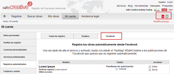 Nuevas funcionalidades en Safe Creative: Facebook, derechos, notificaciones…