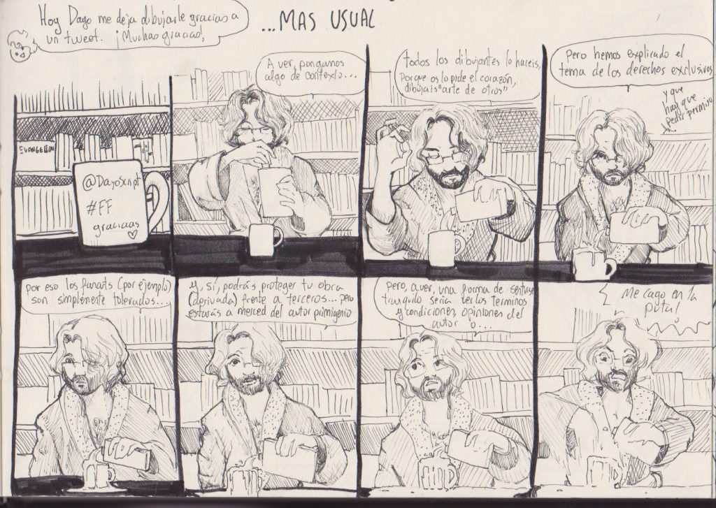 A ver, pongamos algo de contexto… Todos los dibujantes lo hacéis porque os lo pide el corazón, dibujáis «arte de otros», pero hemos explocado el tema de los derechos exclusivos y hay que pedir permiso.