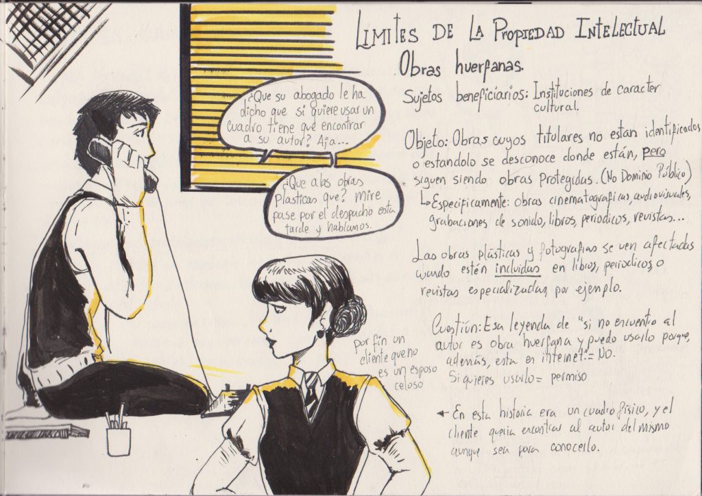 («¿Que su abogado le ha dicho que si quiere usar un cuadro tiene que encontrar a su autor? Ajá… ¿Que a las obras plásticas qué? Mire, pase por el despacho esta tarde y hablamos?» «Por fin un cliente que no es un esposo celoso.» En esta historia era un cuadro físico, y el cliente quería encontrar al autor aunque fuese para conocerlo.)