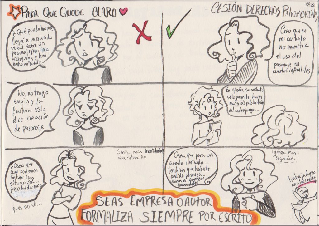 SÍ: «Creo que en mi contrato no permitía el uso del personaje en cuentos infantiles.» «En efecto, su contrato sólo permite hacer material publicitario del videojuego.» «Osea que para un cuento ilustrado tendrían que haberte pedido permiso… vamos a empezar iluminándoles.»
