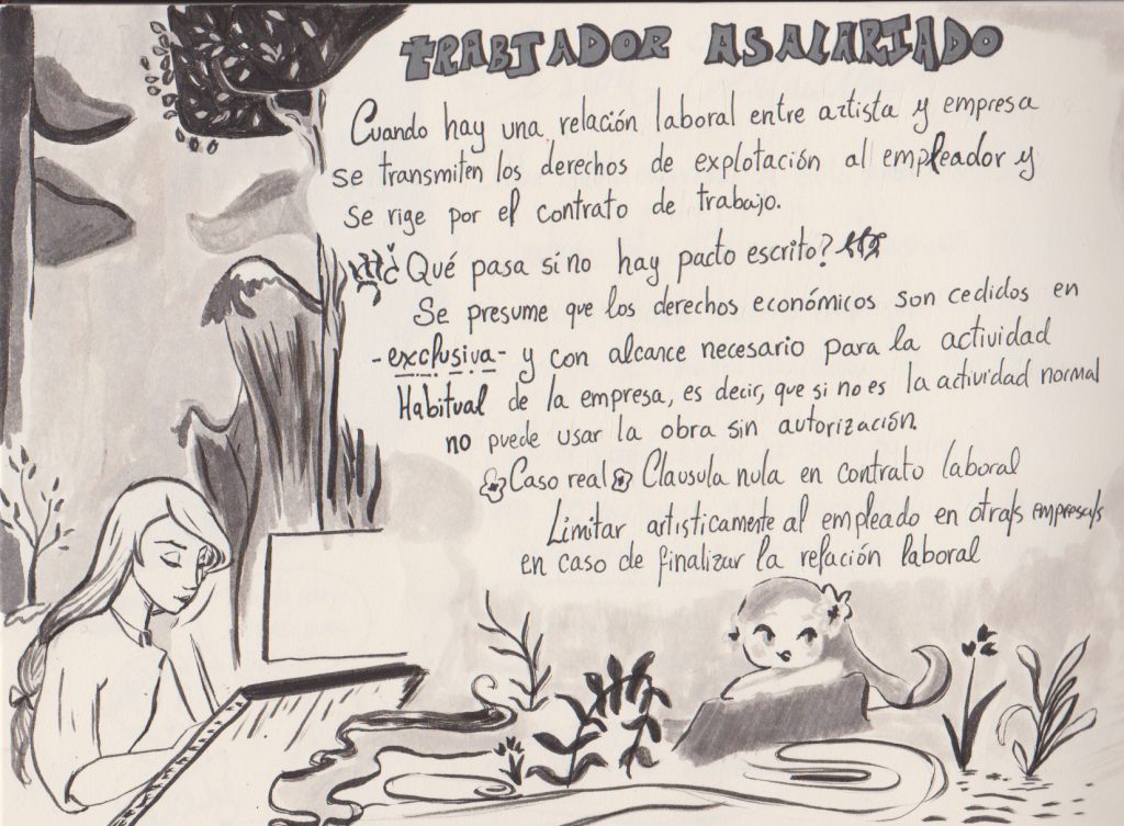 Cuando hay una relación laboral entre artista y empresa se transmiten los derechos de explotación al empleador y se rige por el contrato de trabajo.
