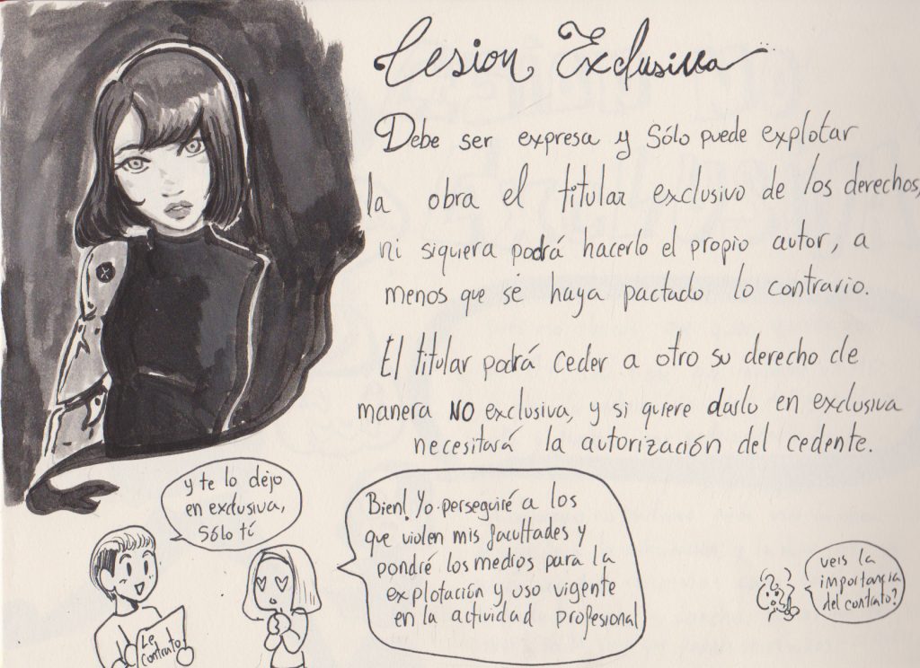Debe ser expresa y sólo puede explotar la obra el titular exclusivo de los derechos. Ni siquiera podrá hacerlo el propio autor, a menos que se haya pactado lo contrario.