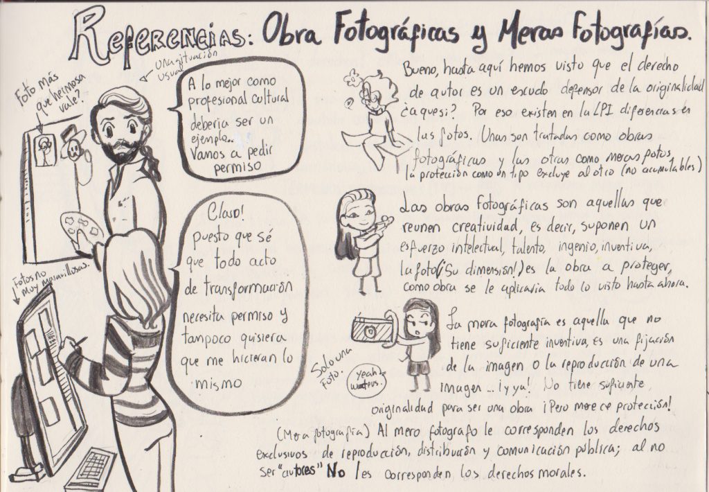 Las obras fotográficas son aquellas que reúnen creatividad, es decir, suponen un esfuerzo intelectual, talento, ingenio, inventiva. La foto (su dimensión) es la obra a proteger, como obra se le aplicaría todo lo visto hasta ahora.