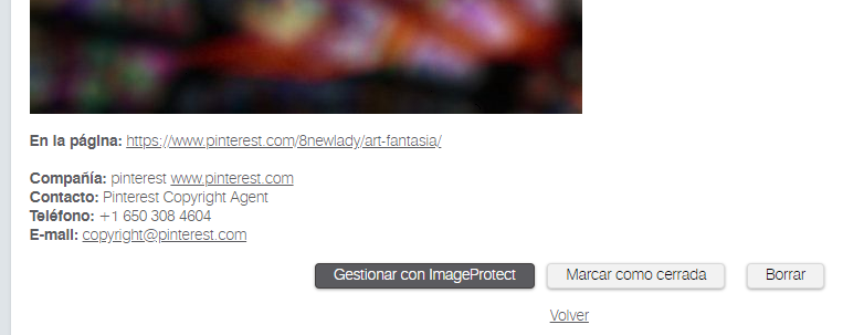 Activa el seguimiento en alguna de tus fotos registradas y entra a gestionarla en Image Protect. Puedes hacerlo viendo los «Detalles» de las fotos en seguimiento en el panel de «Seguimiento de Imágenes. O entrando directamente en Image Protect.