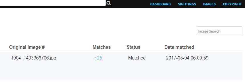 Una vez ahí, podrás ver listados de coincidencias yendo a «Images», haciendo click en la foto cuyas coincidencias te interese revisar, y en el número de la columna «Matches».