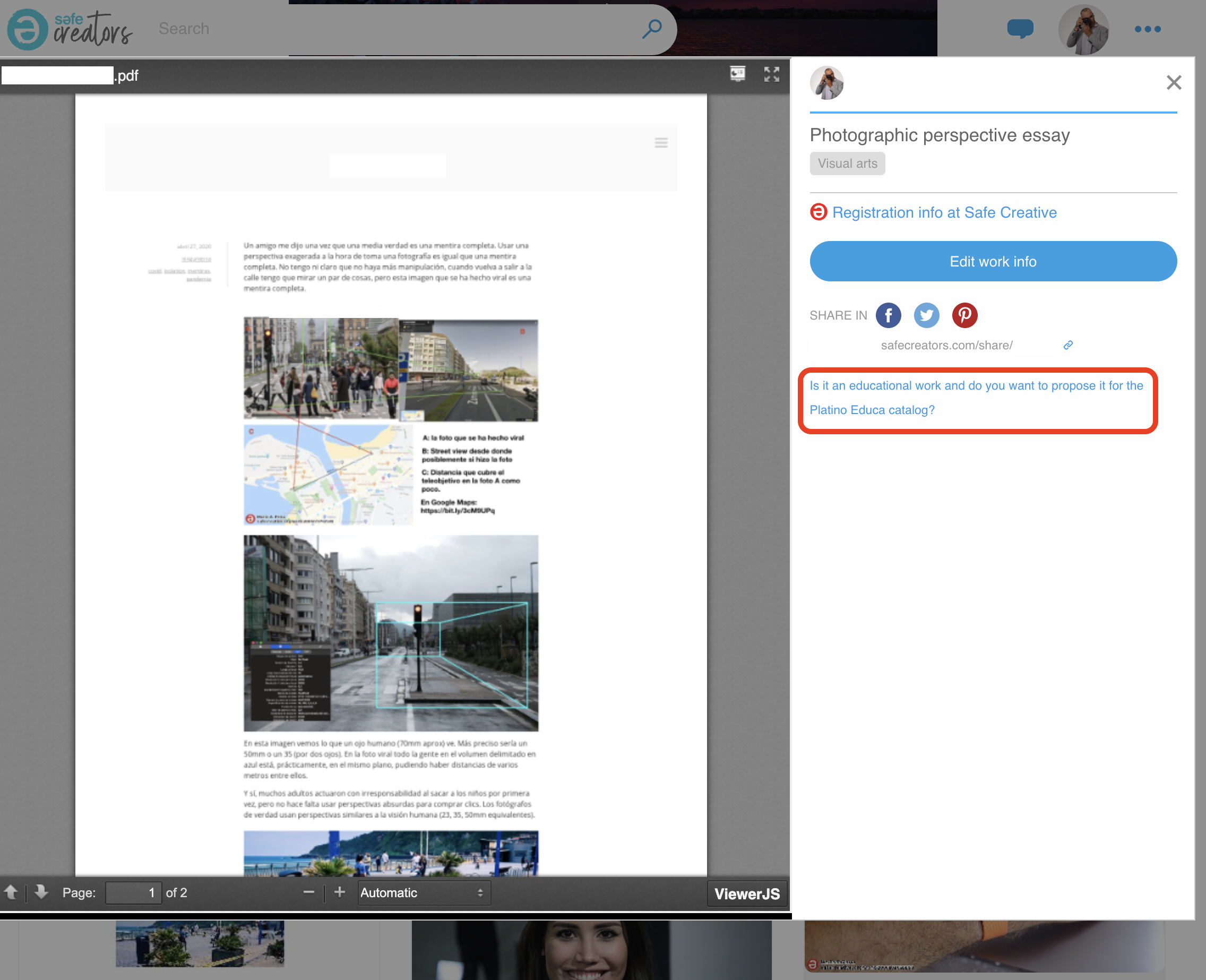 SAFE CREATORS. Es un proyecto de Safe Creative dedicado a creadores para la promoción y visualización de creativos profesionales. Safe Creators permite la publicación de obras ya registradas en Safe Creative, así como destacar obras en el perfil de cada usuario, seguir a otros creadores o contactar con ellos.