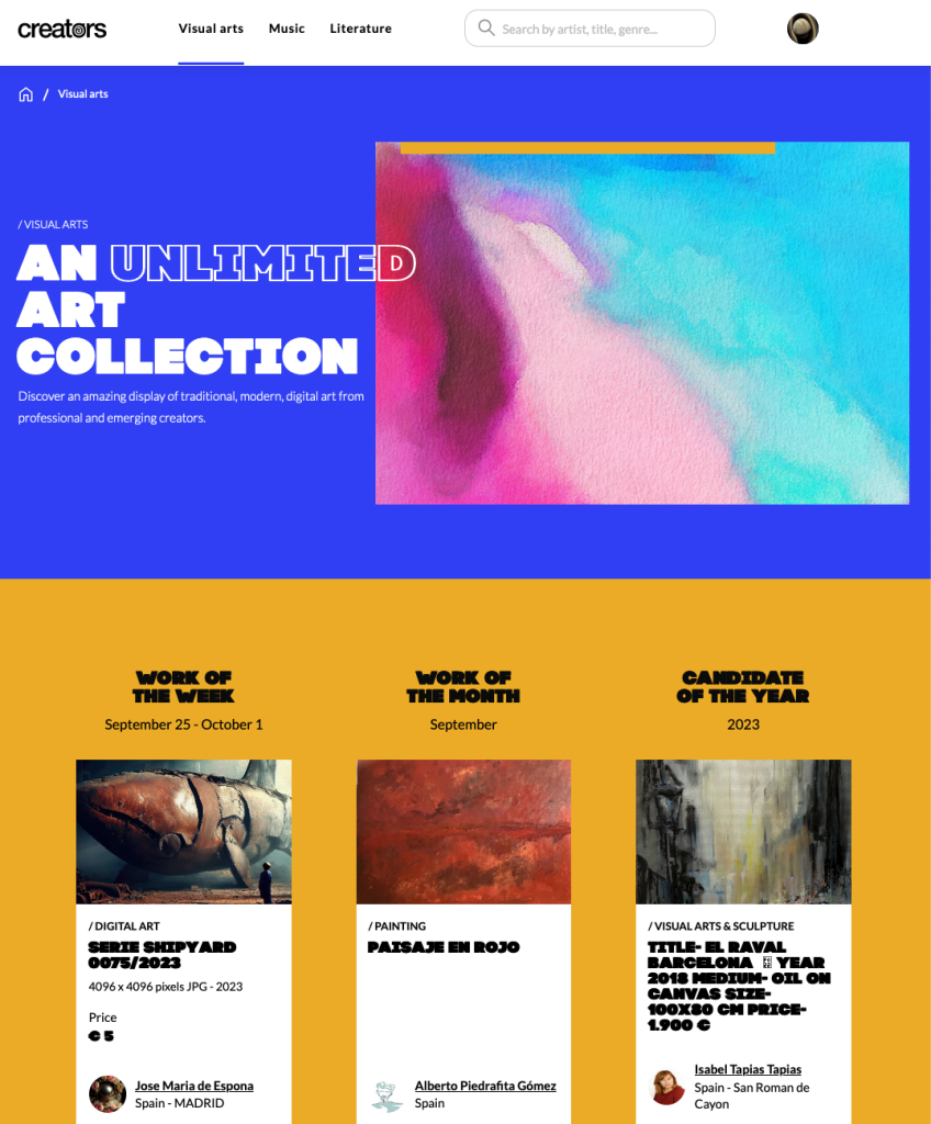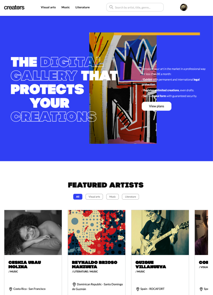 Además, puedes aprovechar, como hemos dicho, la zona de Creators, para tener tu porfolio, galería y zona de venta. Una importante ventaja de este sistema es que puedes tener todo en un único sitio, tu proceso creativo certificado, obra final, exposición de ésta y licenciamiento y, claro, la venta segura.
