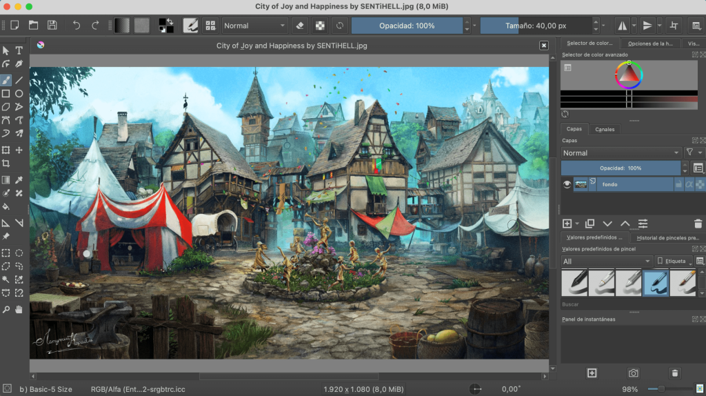 Eso sí, a los que no estén familiarizados con Photoshop o herramientas similares puede parecerles que la curva de aprendizaje de Krita es muy pronunciada. Esa dificultad inicial se debe, sobre todo, a su riqueza de opciones. Hablamos de hasta 30 paneles con funciones adicionales a las que se proponen por defecto; de 100 pinceles distintos, cada uno con sus texturas y efectos específicos; una muy amplia (y personalizable) paleta de colores; herramientas vectoriales para la creación de viñetas de cómic, y opciones tan útiles como el gestor de recursos o el estabilizador de pinceles. Esta última, por ejemplo, permite dibujar con suavidad y precisión incluso a los que tienen un pulso tembloroso.